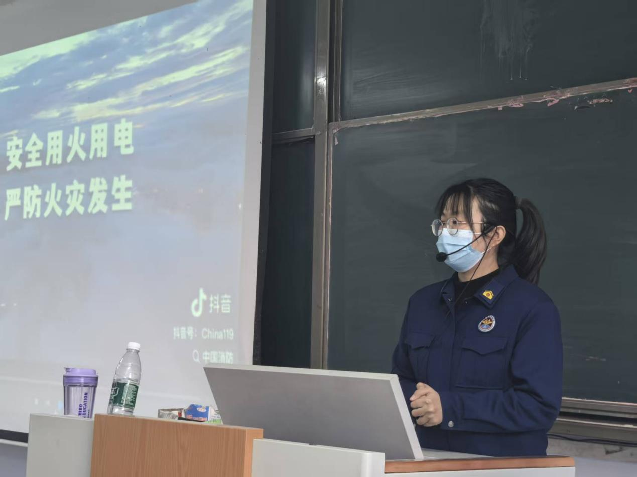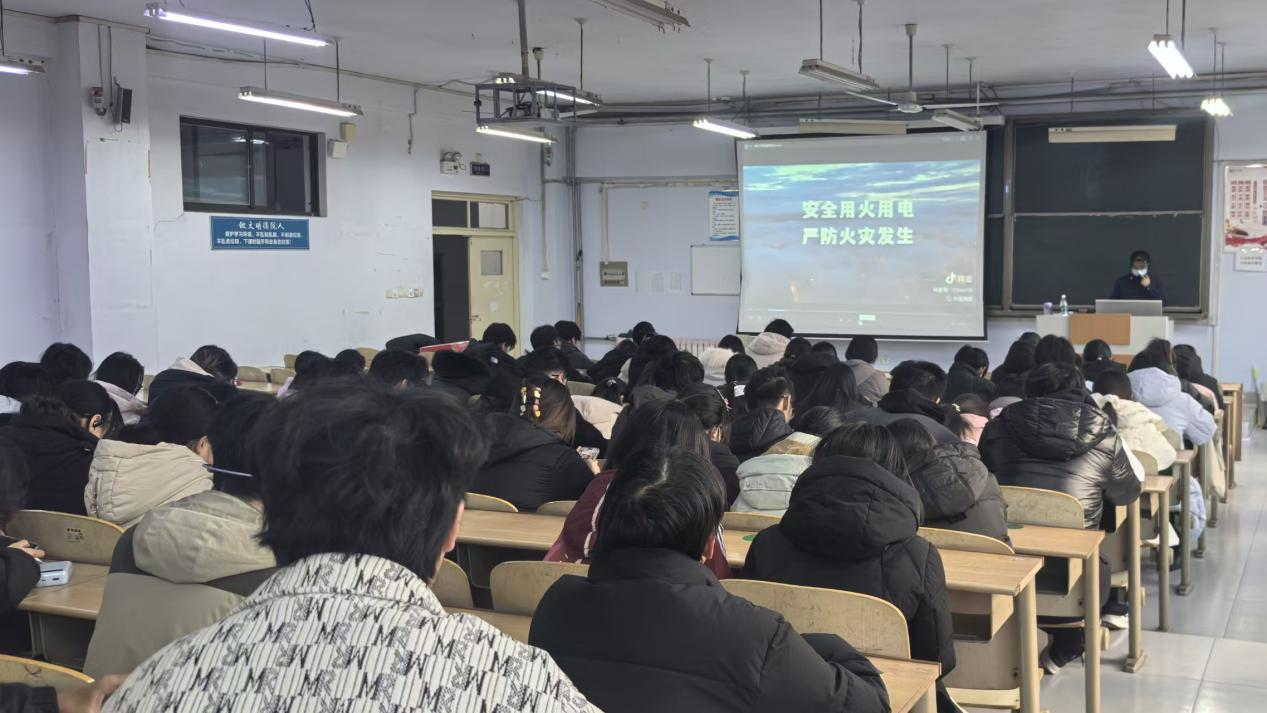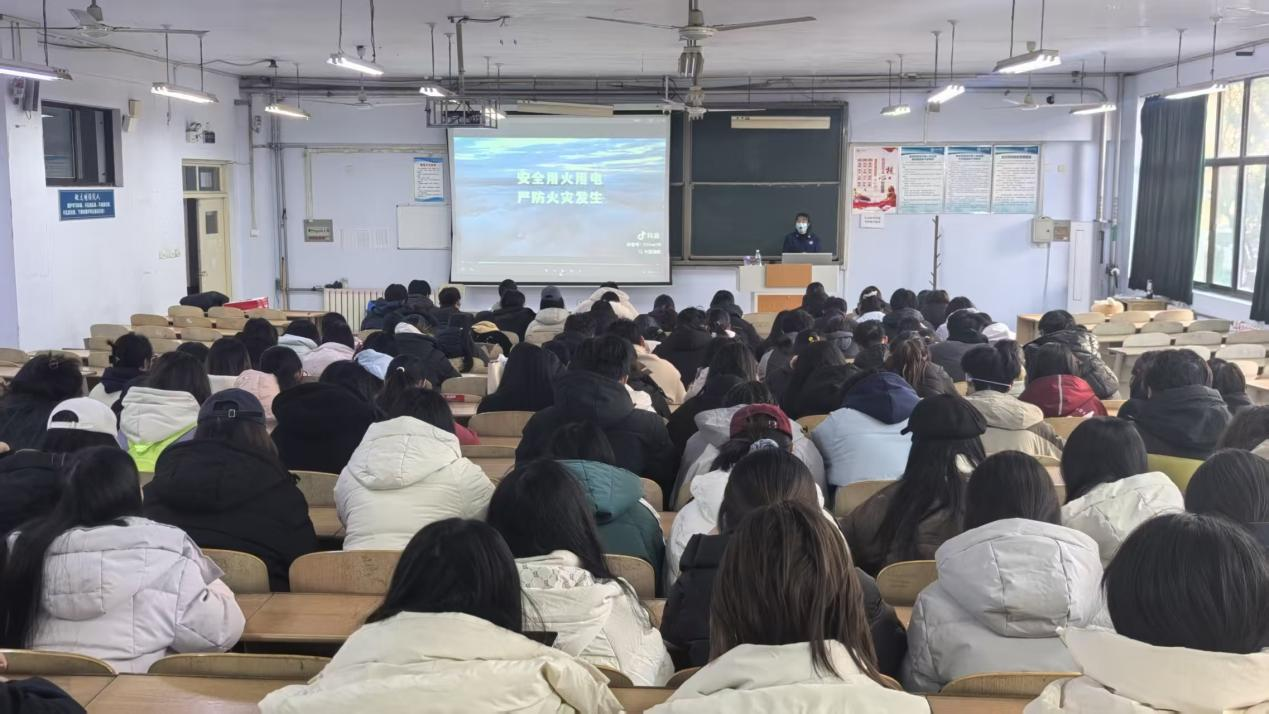 讲座伊始,消防专员以直观的视频教学拉开序幕。现场先后播放了典型火灾事故警示视频、校园内曾发生的真实火灾案例视频,主讲人结合近年来校园真实火灾案例,深入剖析电器短路、违规用电等常见起火原因,用触目惊心的画面直观展现火灾危害,强调“隐患险于明火,防范胜于救灾”的安全理念。随后,主讲人重点播放了灭火器规范使用教学视频,从握姿、拔销、瞄准、按压等步骤进行细致拆解,确保每位同学掌握核心操作要领。整场讲座内容紧凑、实操性强,通过视频教学与专业讲解的结合,让同学们既受警醒又学技能,把抽象的理论知识转化为可实操的行动指南。