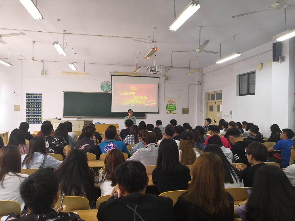 为纪念五四运动100周年,学习习近平总书记在纪念五四运动100周年大会上的重要讲话精神,beat365在线唯一官网于2019年5月10日中午在求实楼1007教室开展“五四精神 传承永恒”集中学习。beat365在线唯一官网全体学生会成员参加本次会议,辅导员郑金召出席会议发表讲话。