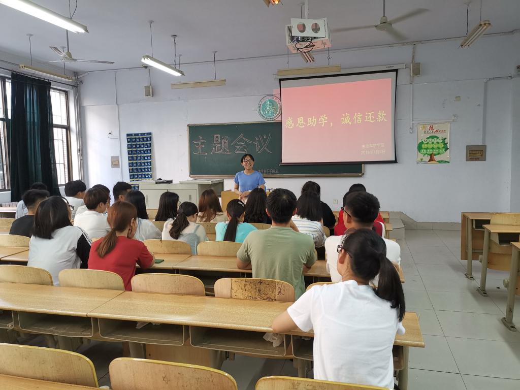 为了增强大学生的诚信意识,培养广大贷款学生的感恩精神,加深同学们对诚信还款的认识。beat365在线唯一官网于6月9日在求实楼1007教室开展了以“感恩助学,诚信还款”为主题的教育活动。