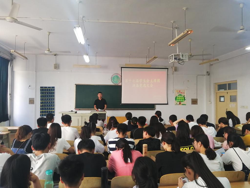 学生会是学生自我管理,自我教育,自我服务的群众性组织,是学校教育的重要力量。建立健全学生会组织,对发扬民主,培养自我管理能力,协助学校管理工作都具有十分重要的意义。会议开始由主持人介绍竞选规则,随后竞选主席、副主席兼秘书长及副主席的竞选者依次上台演讲。各位候选人分别从自身特点、对竞选岗位的认知、进入学生会以来的工作总结以及对未来工作设想等方面作出讲解。竞选者通过这种方式来表明自己对待工作的态度,展现自己的竞选优势。他们的精彩演讲赢得了在场所有人的阵阵掌声。会议最后,由学生会第十六届主席团及现任各部部长通过投票选出最终第十七届主席团成员。