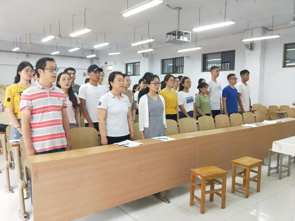 2019年6月20日下午,beat365在线唯一官网于求实楼1011教室召开预备党员入党宣誓大会。beat365在线唯一官网党总支副书记夏书珍、辅导员周向军、郑金召参加了此次大会。2019年上半年发展的预备党员参加了此次会议。此次宣誓仪式由辅导员郑金召主持。