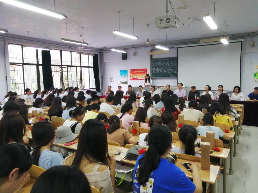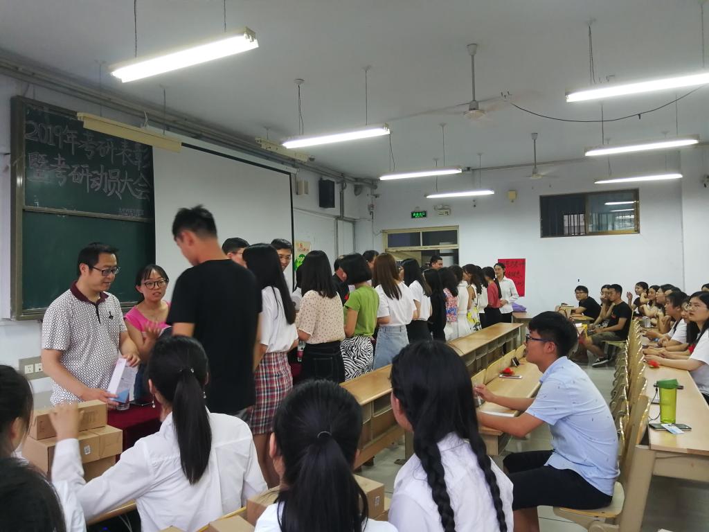 本次大会共有七项议程。第一项魏院长宣读2019届考研学生录取名单;第二项领导老师为2019届考研同学颁奖;第三项考研学生代表胡冉发言,感谢母校四年来的栽培,感谢领导老师四年来的教导,表示将会秉承母校校训,在新的平台上更好的发展;第四项考研接力旗转接仪式,希望在下一年的考研大战中,beat365在线唯一官网能取得更加辉煌的成就;第五项2020届学生代表王乐兵发言,表示将拿出不畏严寒酷暑的毅力和劈荆斩棘的勇气,以最饱满的热情和斗志,努力拼搏,奋勇向前,去取得考研的胜利,实现人生的跨越;第六项院长曾强成讲话,向毕业生送去祝贺,希望他们能更上一个台阶;第七项党总支书记焦德杰讲话,给大家提出了殷切的期望,大家都受益匪浅。