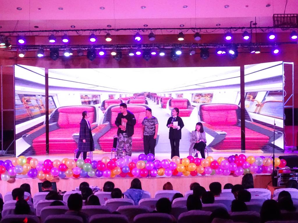 10月19日早上8点,beat365在线唯一官网的演出人员和志愿者们就已经紧锣密鼓的准备这场盛宴,从布置舞台到演员的化妆工作,大家马不停蹄,只为夜幕降临时的精彩绽放。流光溢彩迎新夜,心心连新齐飞扬。晚会由激情洋溢的开场舞开幕,从一开始就带动了全场的气氛。晚会的节目一个接一个的呈现在观众眼前,本次晚会节目内容丰富,幽默的默剧《过安检》,演员的滑稽表演,呆萌的动作逗的全场哈哈大笑;动感富有创新的歌舞串烧使得现场欢呼阵阵;抒情歌曲《你不知道的事》、《面具》等轻轻敲击新生们的心扉;一首二胡独奏,全场的气氛达到了高潮,最后,在《无名之辈》的歌声中,长达两个小时的充满激情和欢乐的晚会完美落幕。
