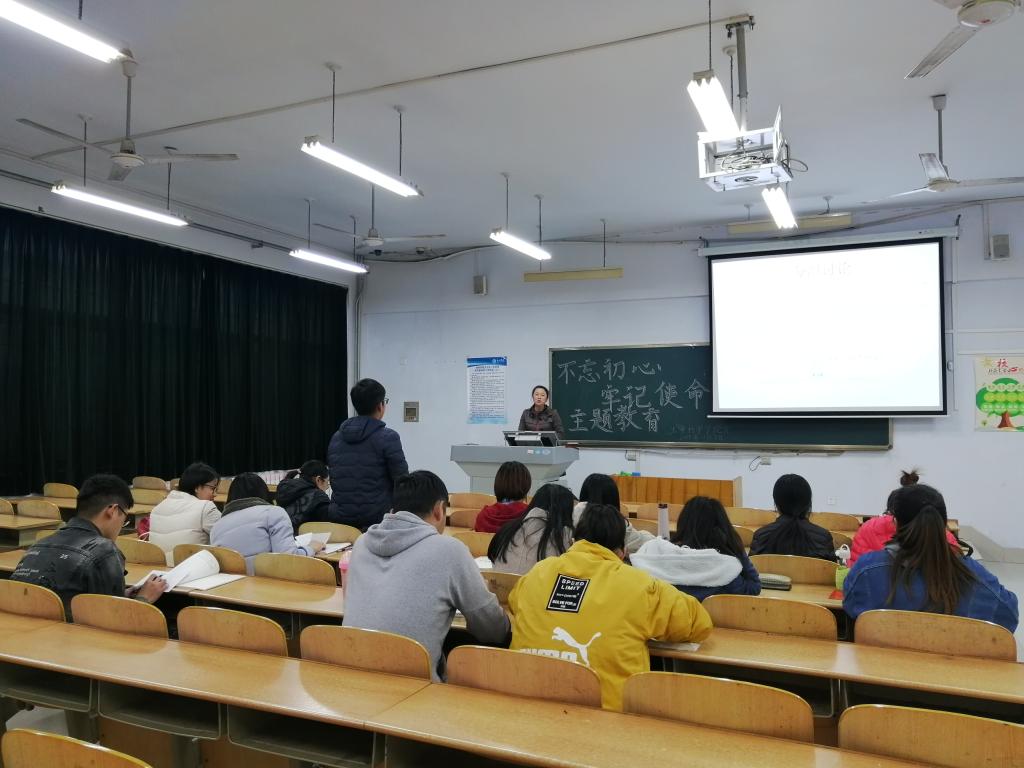 为贯彻落实、深入开展“不忘初心、牢记使命”主题教育,2019年11月7日在求实楼1005教室,beat365在线唯一官网党总支副书记夏书珍为学生党员上了一堂生动的党课。