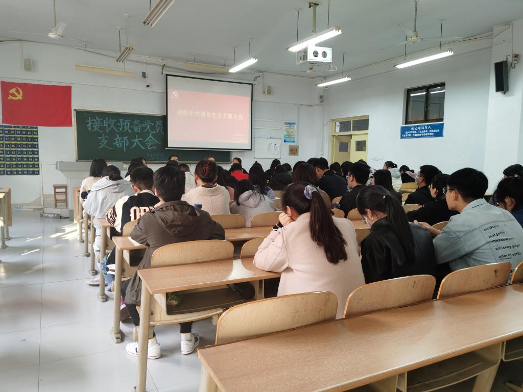 大会讨论表决是否接收发展对象宫春雪,孙雪,孙婉,刘伟,邓丹,丁璇思6名同学为中共预备党员。会议严格按照党组织接收预备党员程序进行,第一项,发展对象宣读《入党志愿书》,向大会汇报自己对党的认识、入党动机、本人履历、家庭主要成员和主要社会关系情况、现实表现,以及需要向党组织说明的其他问题;第二项,入党介绍人介绍对发展对象的培养考察情况、发展对象的问题所在以及本人对吸收其加入党组织的意见;第三项,组织委员周向军、郑金召代表党支部向大会介绍发展对象的培养、考察、公示和对其家庭主要成员和主要社会关系的政审情况;第四项,与会党员酝酿讨论,充分发表意见;第五项,投票表决。6名发展对象逐个依次进行讨论表决,得赞成票超过应到会有表决权正式党员的半数,据相关规定,大会同意接收宫春雪,孙雪,孙婉,刘伟,邓丹,丁璇思6名同志为中共预备党员。宫春雪等6名同志分别表达了自身的想法与决心,并表示他们一定会在今后的学习工作中,坚定目标、严格要求自己,努力改正现有的不足,积极向优秀共产党员学习,树立自身的先锋模范作用,争取早日正式加入中国共产党。
