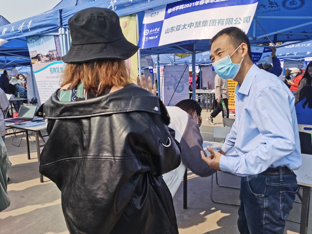 为贯彻落实全国普通高校毕业生的就业创业工作,配合实施“万名博士、十万硕士、百万大学生”的齐鲁创业计划,做好新冠疫情常态化防控下的高校毕业生校园招聘工作,beat365在线唯一官网学子于2021年4月10日在南操场参加2021年“就选山东”高校毕业生招聘会活动。