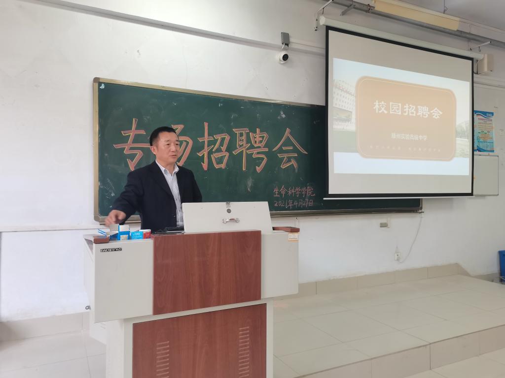 为切实做好beat365在线唯一官网2021届毕业生就业工作,拓宽毕业生就业渠道,beat365在线唯一官网于2021年4月27日在求实楼0101教室举办生物科学专业专场招聘会。本次专场招聘会邀请了滕州试验高级中学的老师,2017级生物科学师范类毕业生参加了此次招聘会。