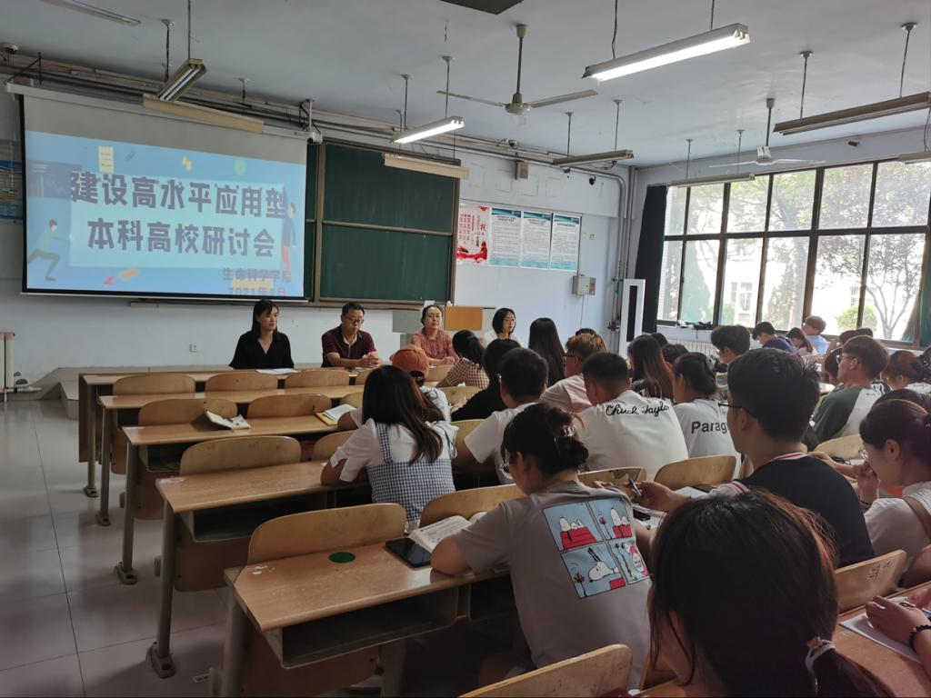会议上,老师们带领大家一起学习了山东省《关于推进应用型本科高校建设的指导意见》,解读了应用型本科高校建设的思路,即提出“四个转变”——转变办学思路,更好地服务地方经济社会发展;转变人才培养定位,培养德智体美劳全面发展的应用型人才;转变办学方式,开展产教深度融合、校企紧密合作;转变教育教学目标,促进学生实践动手能力和就业创业能力提升。