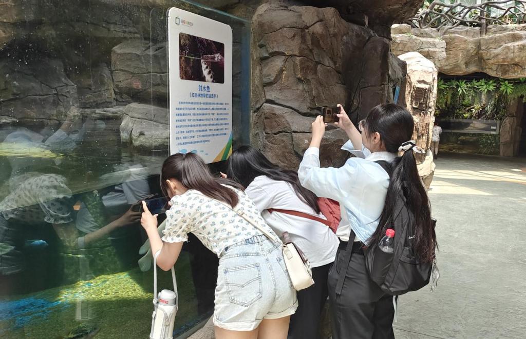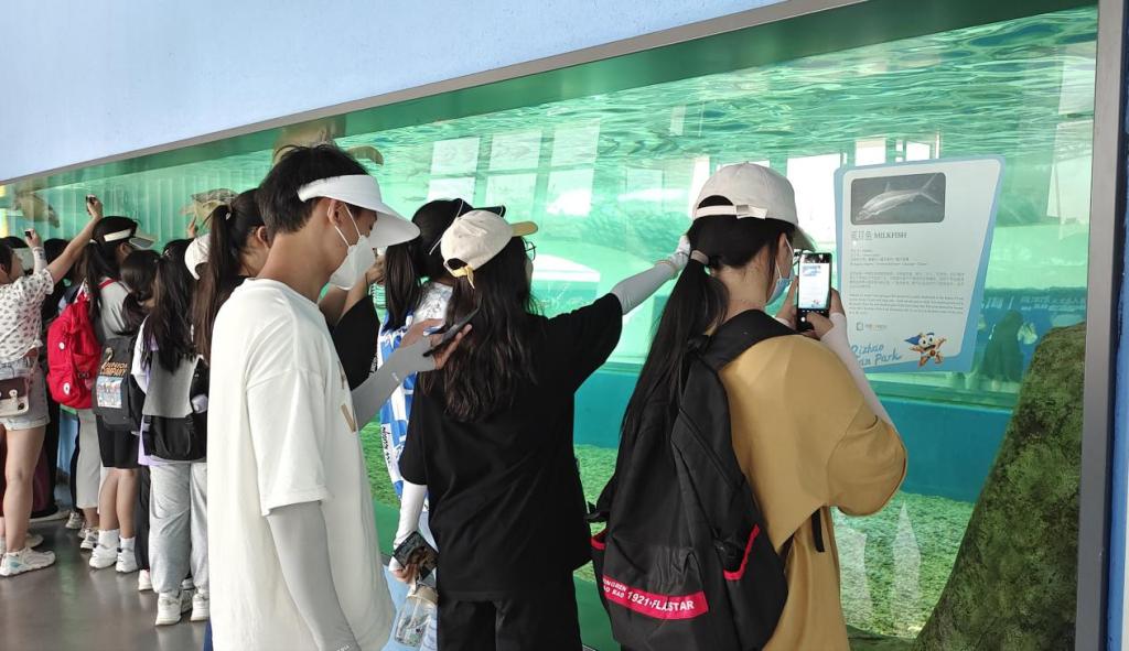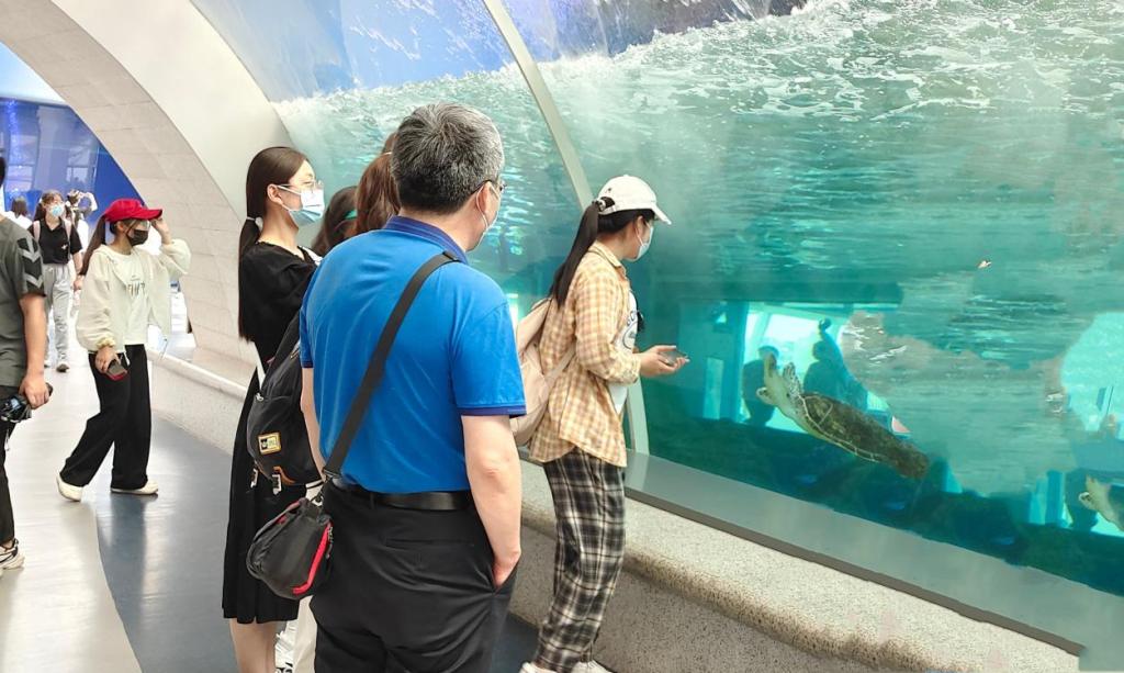 在实习老师的精彩讲解和引领下,同学们先后了解了海洋资源开发、海洋生态环境保护、海洋科技发展、国家海洋权益维护等知识,观看了各类海洋生物标本及展品,实习老师在教授物种识别的基本知识和技能的基础上,引导学生观察自然生态系统中生物与生物、生物与环境的相互作用,理解生态系统的结构完整性和功能统一性。最后,实习老师就同学们存在的疑问和困惑进行了解答,让同学们对于生物学有了更系统的认识。