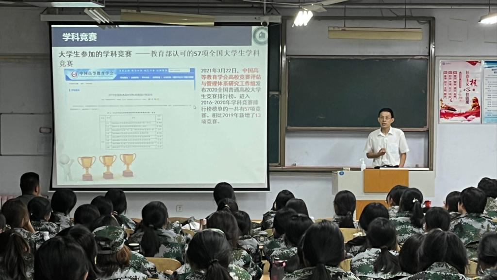 宋院长从创新创业教育、学科竞赛、参赛流程、往期比赛展示四个层面,引导新生充分认识参加大学生创新创业竞赛的必要性和重要性,鼓励他们在大学期间科学制定好自己的学业生涯规划,积极加入实验室参与科研项目和竞赛,提升科学素养和探究能力。