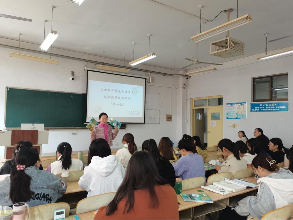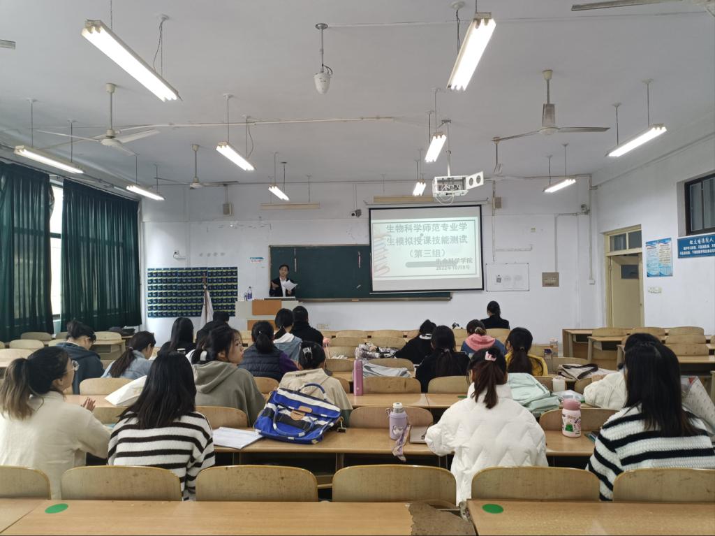 10月8日,beat365官网2019级生物科学专业师范生分成五组进行模拟授课技能测试工作。学院领导班子成员、生物科学专业系主任、生物学科教学专业教师、新引进青年博士教师进行现场观摩指导。