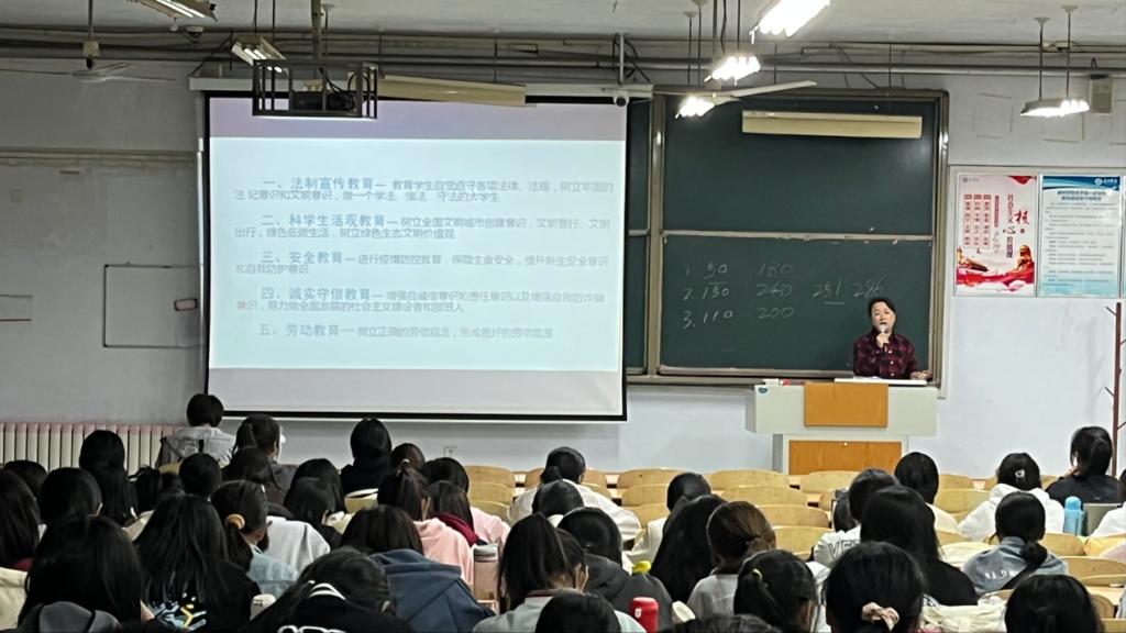 10月14日,beat365在线唯一官网党委副书记在求实楼0111教室为2022级新生开展文明修身教育。