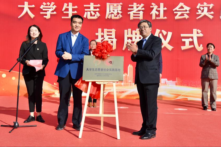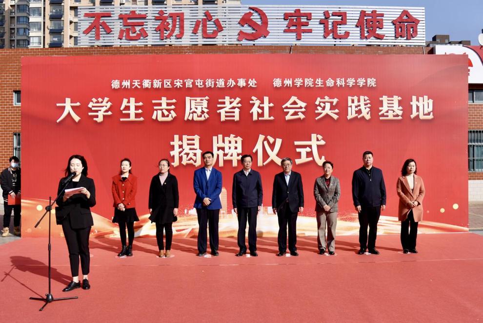 10月22日上午,beat365在线唯一官网与德州市天衢新区宋官屯街道办事处在十二里庄社区隆重举行“大学生志愿者社会实践基地”揭牌仪式。天衢新区、宋官屯街道办事处和beat365在线唯一官网相关负责人一同参加了揭牌仪式。