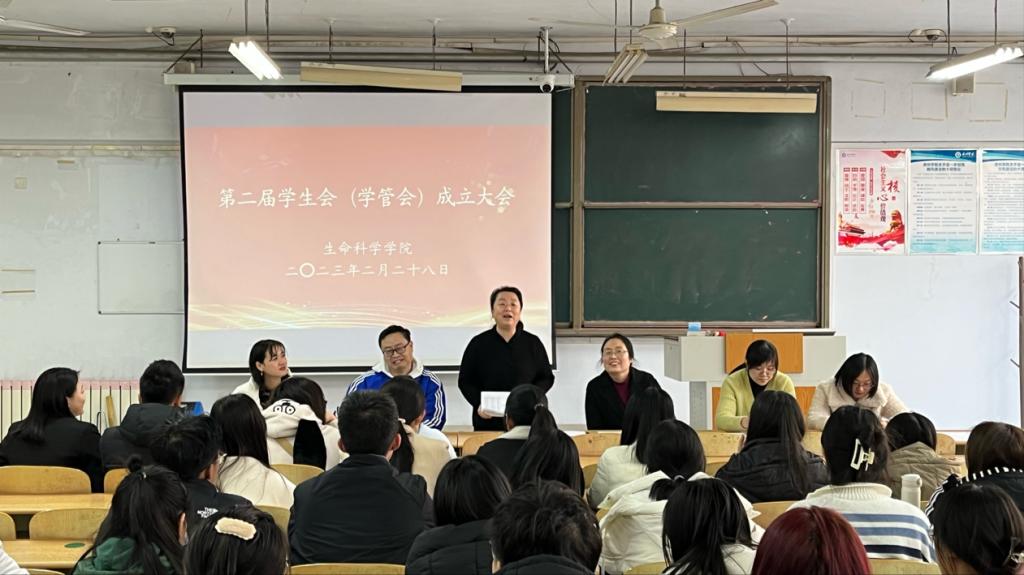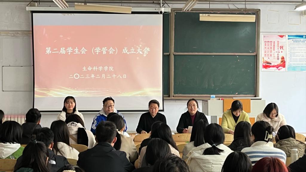 会上,学生会主席李梓萌同学宣读了第二届学生会成员名单。部长代表和新生代表霍春慧、孙悦同学做表态发言,她们激励大家要以服务全院师生为宗旨,用最饱满的热情迎接挑战,随后,辅导员老师们依次发言表示同学们要做到“学、拧、主、序”,形成“传、帮、带”的良好局面,树立全心全意为同学服务的意识,培养奉献精神和团结协作精神,做好新学期工作规划,遵守学校规章制度,充分发挥骨干模范带头作用,为营造良好的校园文化氛围贡献力量。夏书记做出总结性发言,她对学生会的工作给予充分肯定,并对下一步工作提出了四点要求:一是全体学生干部要明确工作性质,提高工作能力与服务水平;二是要严以律己,宽以待人,恪守学生本分,做有礼貌、有纪律的学生干部;三是积极配合学院工作,谋求成长资源,珍惜发展平台,不断提升自身价值;四是在学院领导下,以不甘落后的精神打造具有强大战斗力的先锋队伍,在新的一年里继续创造辉煌。最后,全体学生会成员依据学生会干部自律公约倡议书内容进行宣誓。