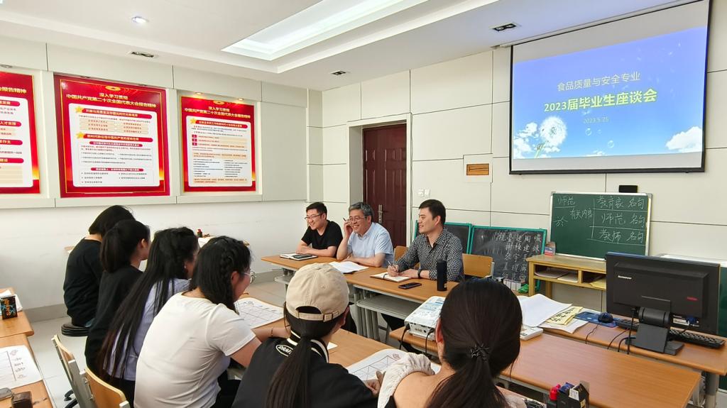 5月25日,为深入推进学习贯彻习近平新时代中国特色社会主义思想主题教育,把调查研究工作同中心工作和决策需要紧密结合起来,beat365在线唯一官网于求索楼0223室召开2023届食品质量与安全专业毕业生座谈会,生命科学学学院党委书记赵庆福、系主任弭永生、专业教师刘程参加座谈会,座谈会由系主任弭永生主持。