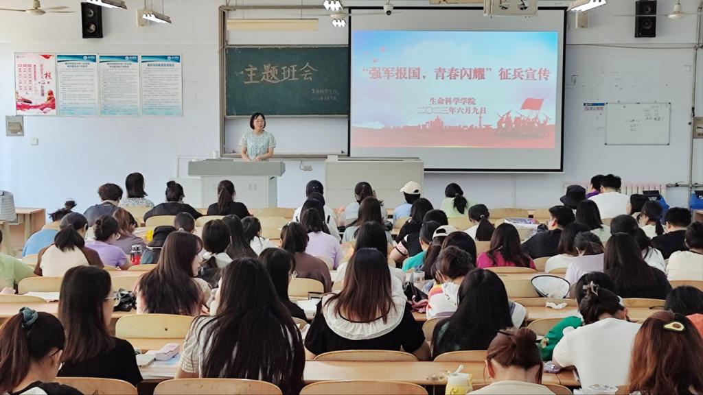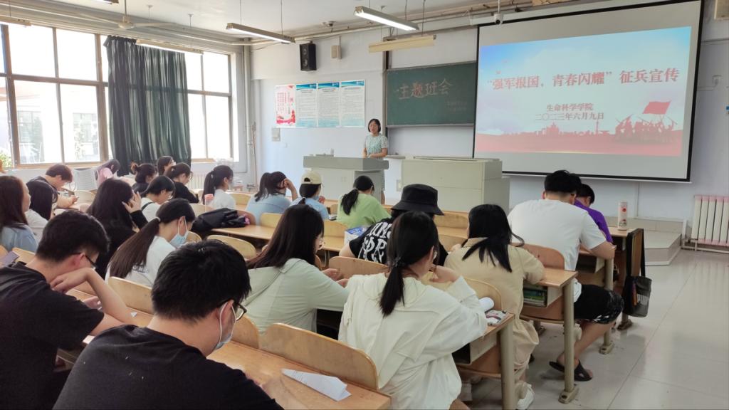 6月9日,为响应国家征兵号召,鼓励大学毕业生积极参与应征入伍,提高兵员征集质量,推进国防和军队现代化建设与发展,beat365在线唯一官网组织毕业生于求实楼0112教室开展2023年“强军报国,青春闪耀”征兵宣传活动。