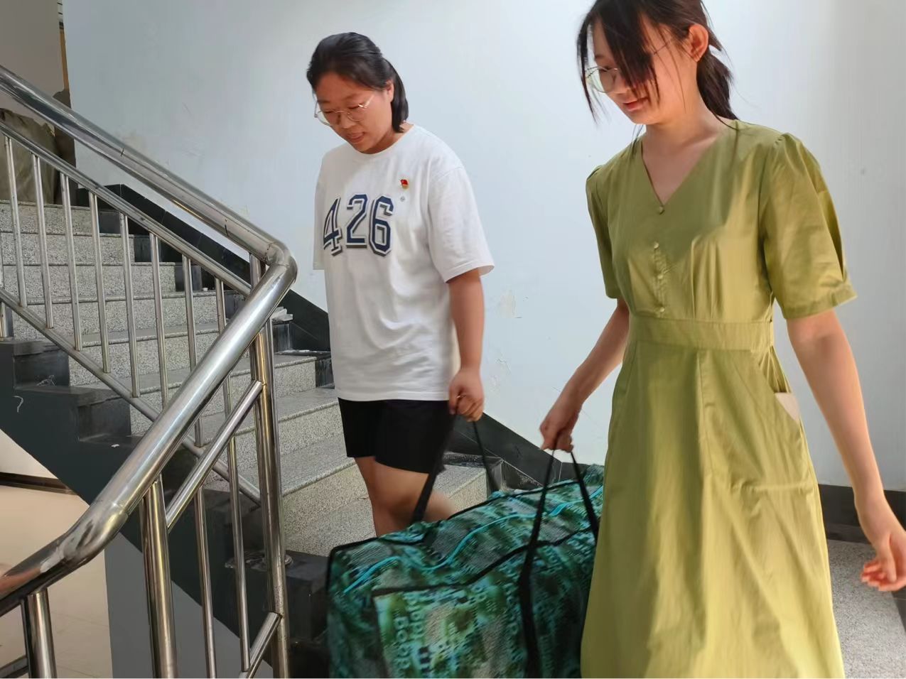 学生党员以小组为单位深入毕业生寝室,迅速进入工作状态,服从调遣,合理分工,互相配合,热情地为毕业生搬运行李,带着扫帚、抹布,一丝不苟的清扫地面、窗台等容易积攒灰尘的地方,收拾床铺,清洁桌椅、衣柜上的污渍,认真细致地打扫每个角落,确保卫生不留死角。