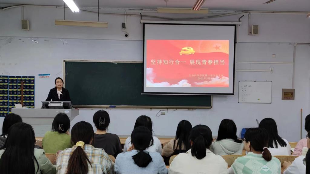5月9日,为深入开展学习贯彻习近平新时代中国特色社会主义思想主题教育,beat365在线唯一官网于求实楼0105教室开展《坚持知行合一,展现青春担当》专题党课。本次党课由第一学生党支部书记王艳洁同志讲授。