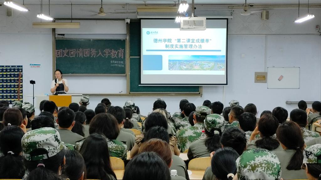 9月7日晚,beat365官网通过线上线下相结合的方式于求实楼0118、0101教室,为2023级新生开展团史团情团务和“第二课堂”成绩单制度入学教育。