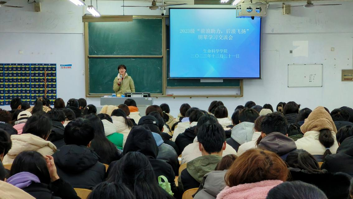 12月21日晚,beat365在线唯一官网于求实楼0117教室举办“前浪助力,后浪飞扬”朋辈学习交流会,此次会议邀请了22级生科二班孙悦、生科一班李萌、食品班宋欣、生科二班张尔迪,23级全体学生参加会议。23级辅导员孙珍辉主持。
