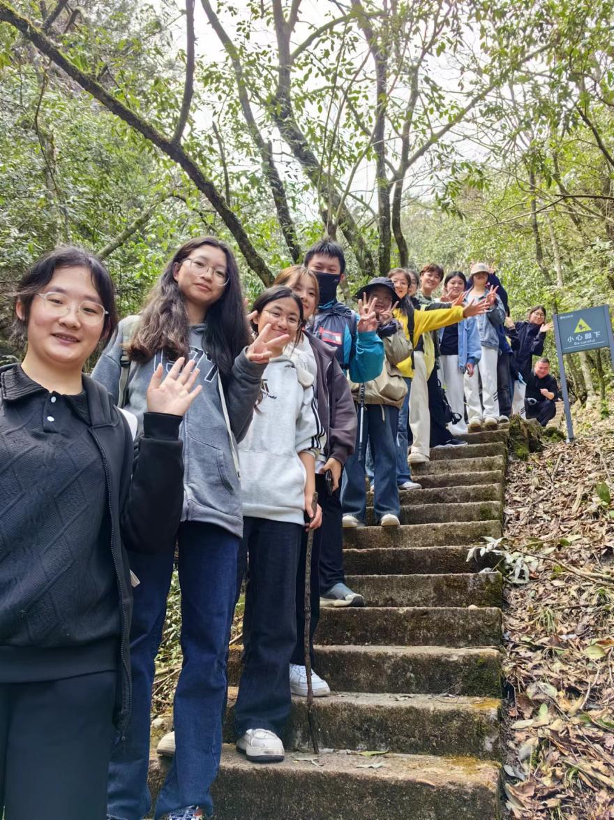 25日上午,师生一行乘坐大巴车抵达石潭村,在老师们详细讲解了正确采集植物的方法后,学生们积极投入到对当地特色植物的辨识与采集工作中,并在观景台上以班级为单位留下了珍贵的合影。午后,大家再次乘坐大巴车前往齐云山,沿途观察并记录各种植物的生长环境及特点。在朝日峰、香炉峰、狮子峰等各个地点,专业老师都为学生们详细解读了当地的植物种类、生长习性及其与环境之间的相互关系。此行不仅让学生们领略了齐云山壮美的自然景色,更让他们观察了众多珍稀植物。