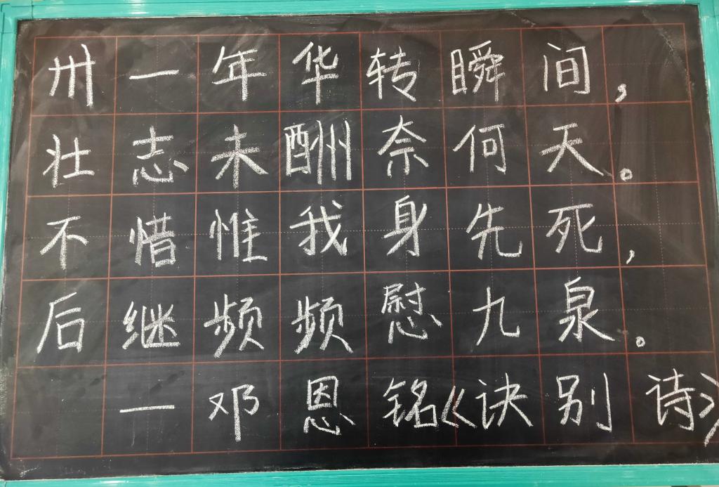 清明节前夕,beat365在线唯一官网利用2023级生物科学(师范类)专业学生的“三字一话”课程,组织开展了“缅怀革命先烈,探忆峥嵘岁月”三字一话技能大赛。同学们通过毛笔字、钢笔字、黑板字的形式书写名句,缅怀先烈。大家在展示了良好专业能力的同时,接受了一次生动的红色革命文化教育,真切地感受到革命先辈的光荣事迹所带来的强大的精神力量。