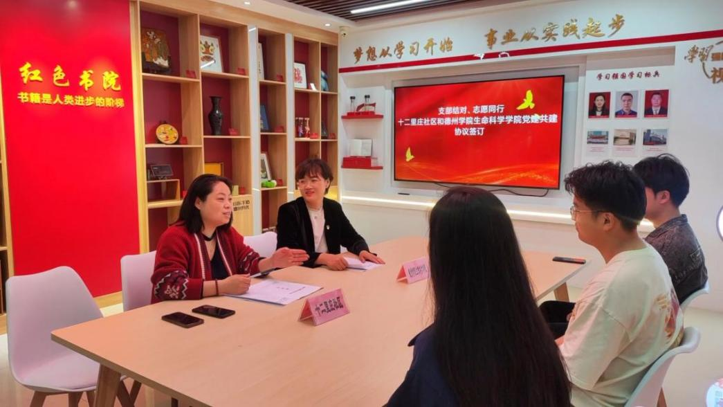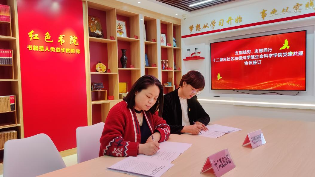 4月23日下午,beat365在线唯一官网第三学生党支部书记孙珍辉与十二里庄社区中心与党支部书记阎攀攀于红色书院共同签订《德州天衢新区共驻共建协议书》,形成“共建组织、共抓队伍、共享资源、共谋发展”的党建工作新格局,共育“德才兼备”的时代新人。