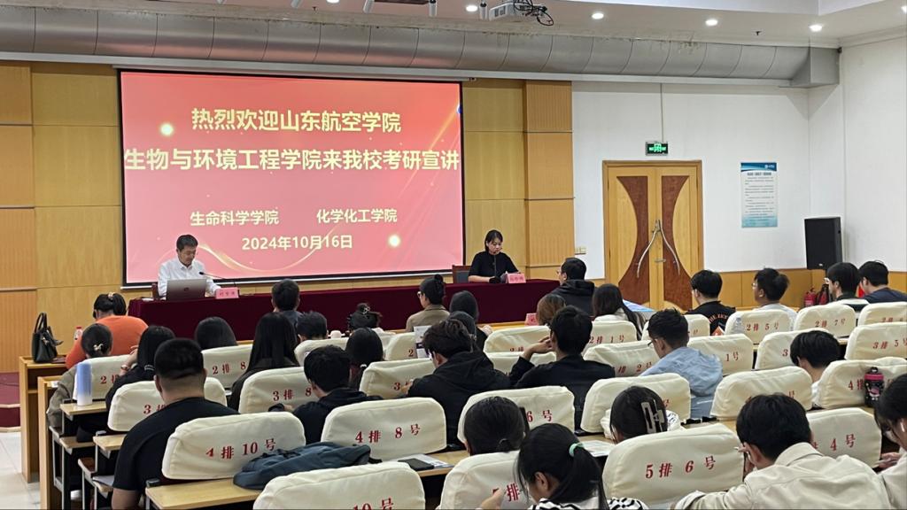 10月16日,山东航空学院生物与环境工程学院副院长刘京涛教授、刘龙祥副教授莅临我校进行硕士研究生招生宣讲,beat365在线唯一官网团委书记孙珍辉主持。
