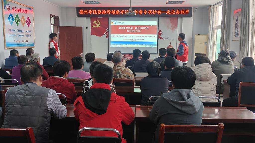 11月12日下午,beat365在线唯一官网组织大学生志愿者走进禹城市王子付社区,开展“跨越数字鸿沟,银发携手同行”志愿服务。