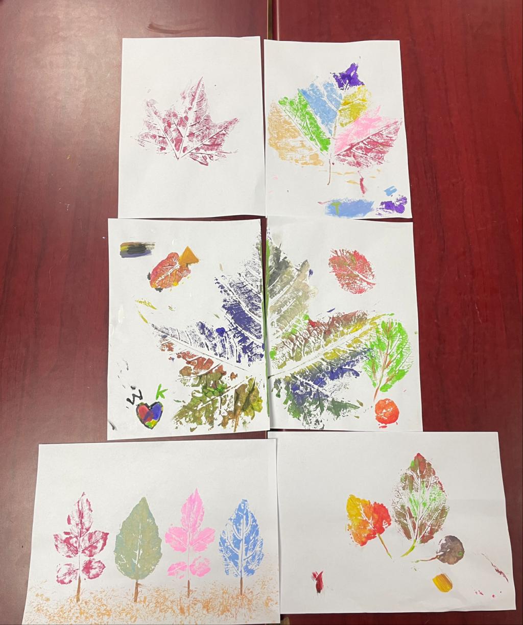 活动伊始,社团部成员顾雯作为主讲人登台,以饱满热情的态度和诙谐幽默的表达,将植物拓印的细节及流程逐一拆解,深入阐述其蕴含的独特意义,把同学们引入了一个妙趣横生的植物世界,让大家对植物拓印有了全新且深入的感知。紧接着,志愿者把各类植物树叶和绘画工具有序分发给同学们。大家凭借刚汲取的植物拓印知识,将树叶平铺在纸上,用颜料和画笔精心涂抹着,一幅幅精美的画作跃然纸上。