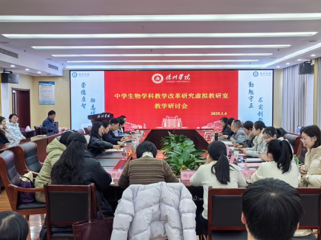 2025年1月4日下午,中学生物学科教学改革研究虚拟教研室研讨会在beat365在线唯一官网厚德楼第二会议室成功举行。山东省特级教师、原山东省教育科学研究院教研室主任张可柱,beat365在线唯一官网的骨干教师以及德城区、天衢新区多所初高中的生物教学骨干,还有刚结束支教实习的生物科学专业大三学生们参加了此次研讨活动。