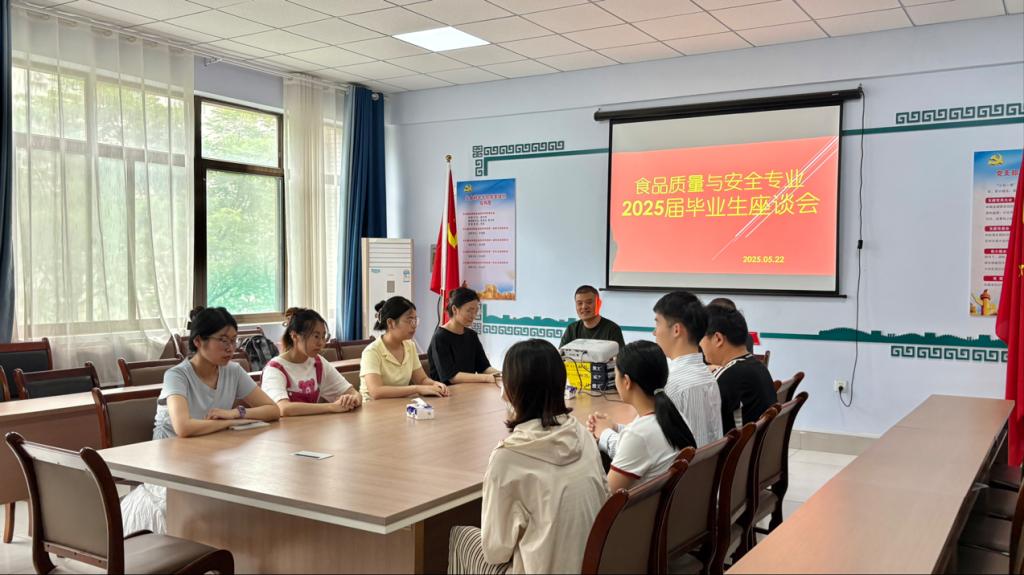 为深入了解教学成果,倾听毕业生心声,优化人才培养方案,进一步提升食品质量安全专业教学质量,beat365在线唯一官网于5月22日在求实楼204会议室开展食品质量与安全专业 2025 届毕业生座谈会,本次座谈会由食品质量与安全专业负责人主持。