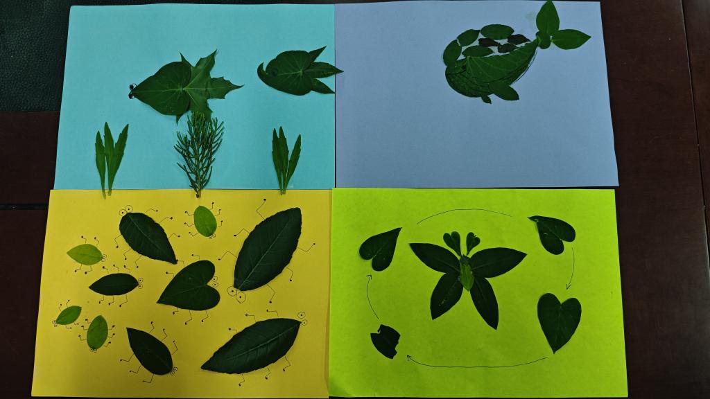活动中,主讲人从树叶的自然形态、色彩特性切入,细致讲解拼贴画的艺术构思与创作技法,指导同学们如何将自然素材转化为创意作品。在手工创作环节,同学们化身“自然艺术家”,充分发挥想象力,灵巧剪裁、精心拼贴,将形态各异、色彩斑斓的叶片,变成了一幅幅饱含巧思的艺术佳作,让自然馈赠在指尖焕发新生。活动现场,大家专注创作、热烈交流,在亲手赋予落叶新生命的过程中,感受自然与创意碰撞的独特乐趣,用艺术创作表达对自然馈赠的珍视与感恩。