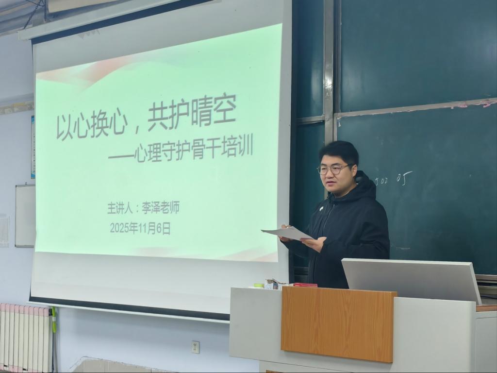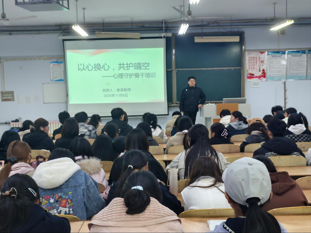 培训中,李泽老师结合扎实的理论基础和丰富的心理危机干预经验,围绕三大核心内容展开系统讲解:一是大学生常见心理问题的典型表现与识别方法,帮助骨干快速、准确地察觉同学心理异常信号;二是朋辈沟通中的倾听、共情与陪伴技巧,指导骨干掌握科学有效的心理支持策略;三是朋辈心理支持的基本原则与工作流程,明确“识别—应对—上报”的职责链条,助力心理骨干成为连接同学与专业心理资源的“暖心桥梁”。随后,在交流互动环节,心理骨干们踊跃分享实际工作中遇到的困惑与挑战,李泽老师逐一进行细致解答,并结合真实案例提供切实可行的解决方案,有效增强了培训的实用性和指导性。