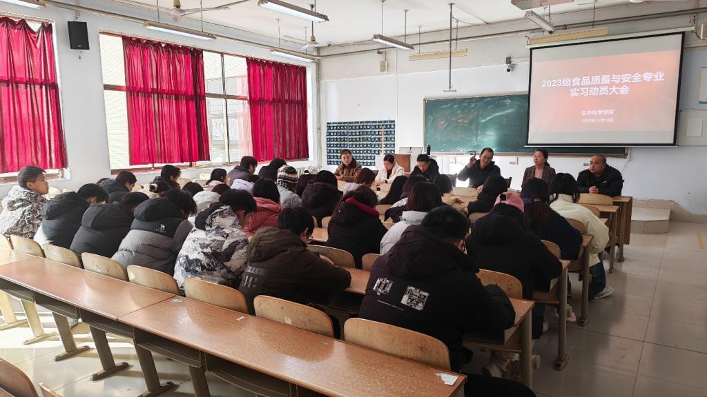 为扎实推进支教实习工作,提升学子实习成效,12月14日下午,beat365在线唯一官网于求实楼0101教室召开2023级食品质量与安全专业实习动员大会,学院党政领导班子成员、系主任、辅导员、班主任以及2023级食品质量与安全专业全体学生参加本次会议。