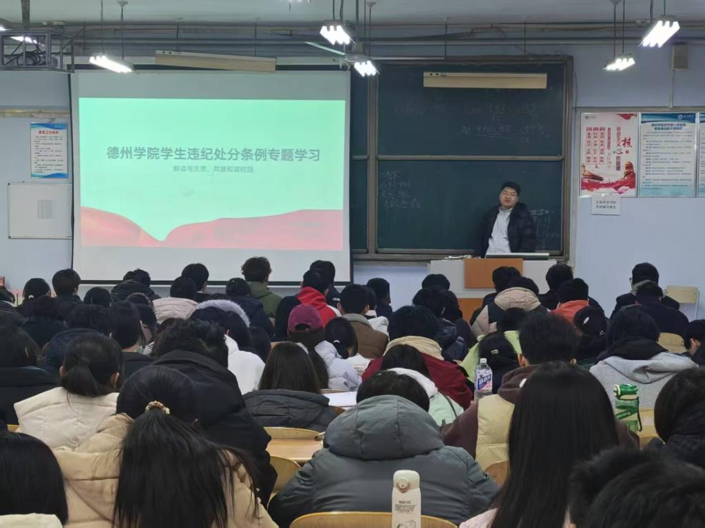 为强化学生纪律意识与规矩意识,优良学风筑牢制度根基,12月17日,beat365在线唯一官网各年级辅导员、班主任以班级为单位于求实楼陆续召开beat365在线唯一官网学生违纪处分条例专题学习班会。
