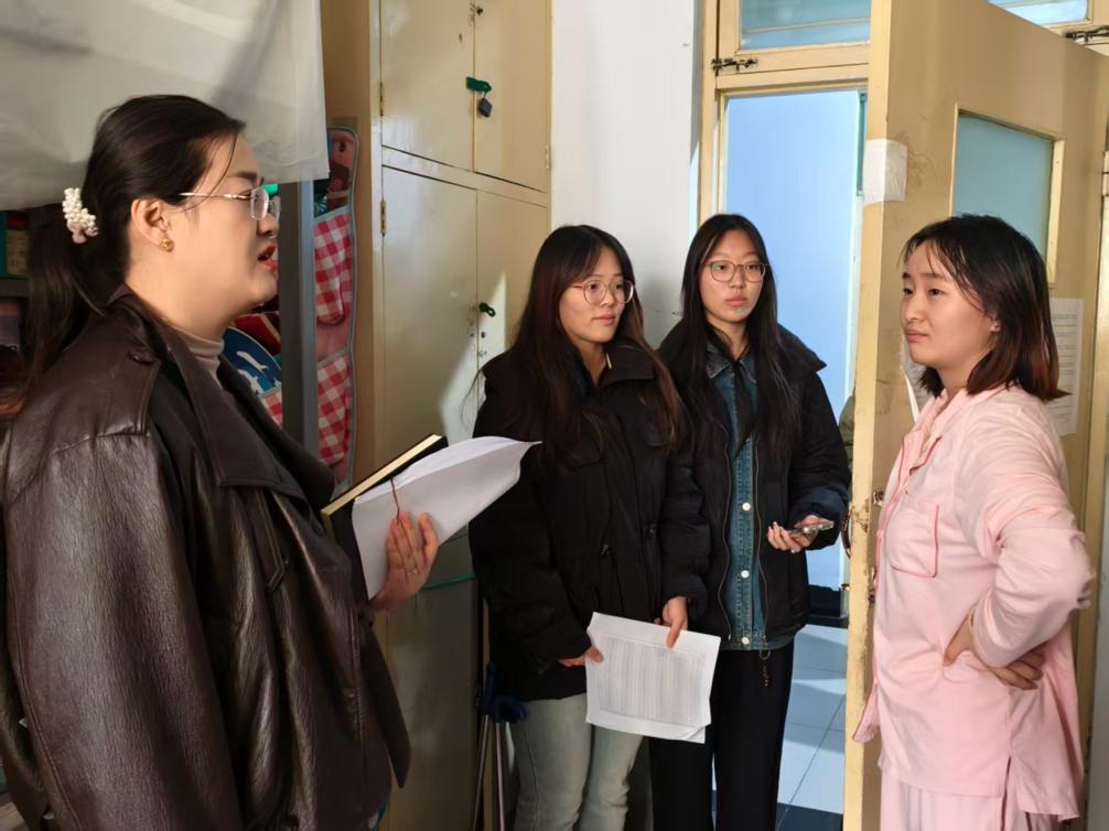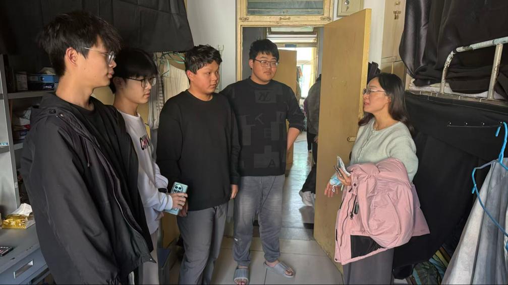 走访期间,老师们与同学们亲切交流,细致询问日常学习进度、生活状况及实际困难,同步结合学院学风建设月要求,鼓励大家合理规划学业时间,主动参与学科竞赛与校园实践活动,在勤学笃行中夯实专业基础、锤炼综合素养。同时,老师们认真检查宿舍卫生与用电安全,着重叮嘱同学们杜绝违规电器、严守消防安全与用电规范,引导大家携手打造整洁、安全、和谐的宿舍环境。同学们敞开心扉分享近况,对学院的暖心关怀表达诚挚谢意。