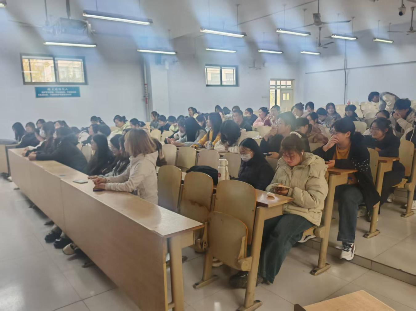 活动开场,主持人介绍结合生科院专业背景,讲解鲜花护理核心内容,涵盖醒花的正确步骤、玫瑰/洋桔梗/向日葵等常见花卉的修剪技巧、换水频率与保鲜剂的使用要点,同时梳理了“直接插瓶不醒花”“随意修剪花枝”等养护误区,帮助同学们建立科学的护理认知。接着,志愿者为同学们分发鲜切花材、修剪工具、保鲜剂及装饰花器,同学们在现场指导下依次完成醒花的浸泡处理、花枝斜剪与冗余叶片去除,结合个人审美进行创意瓶插搭配。