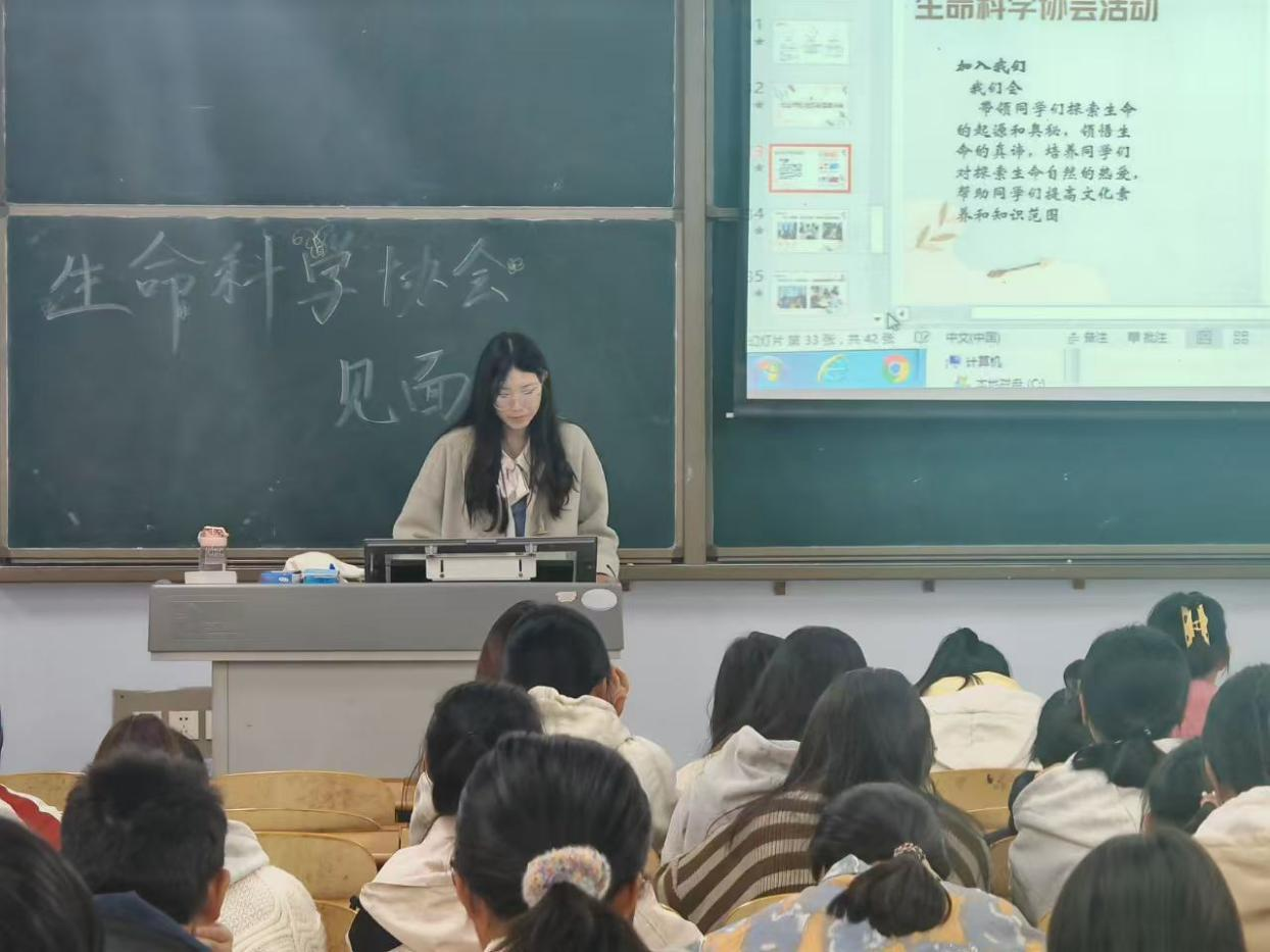 活动现场, 暖场破冰游戏让新老成员快速消除陌生感,随后协会负责人详细 介绍协会宗旨、组织架构、过往特色活动及本学期活动规划,涵 盖野外生物观察、实验技能培训、科普讲座分享等多元内容;老 成员代表结合自身经历,分享参与协会活动的收获与感悟,解答 新生关于活动参与、知识拓展等方面的疑问。