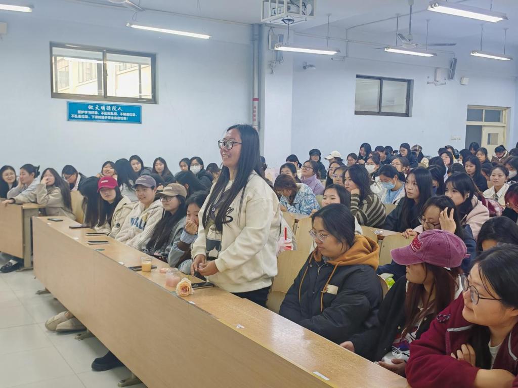 活动伊始,主持人简要介绍了活动初衷与流程,强调花材分 类在花艺创作中的基础作用,引发同学们的参与兴趣。随后,专 业花艺师以“理论+实物”结合的方式展开科普,系统讲解了花材 按形态(主花、配花、叶材)、用途(观赏、礼仪、装饰)、花期 (时令、四季常开)、色系(暖调、冷调、中性色)等分类标准, 通过展示玫瑰、百合、满天星、尤加利等常见花材样本,细致拆 解识别特征、生长习性与养护要点,让同学们直观感受花材的多 样性。