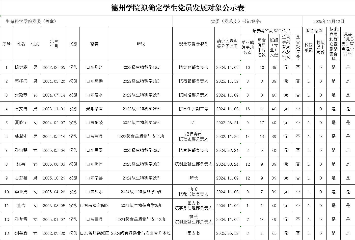 附表:beat365在线唯一官网拟确定党员发展对象公示表