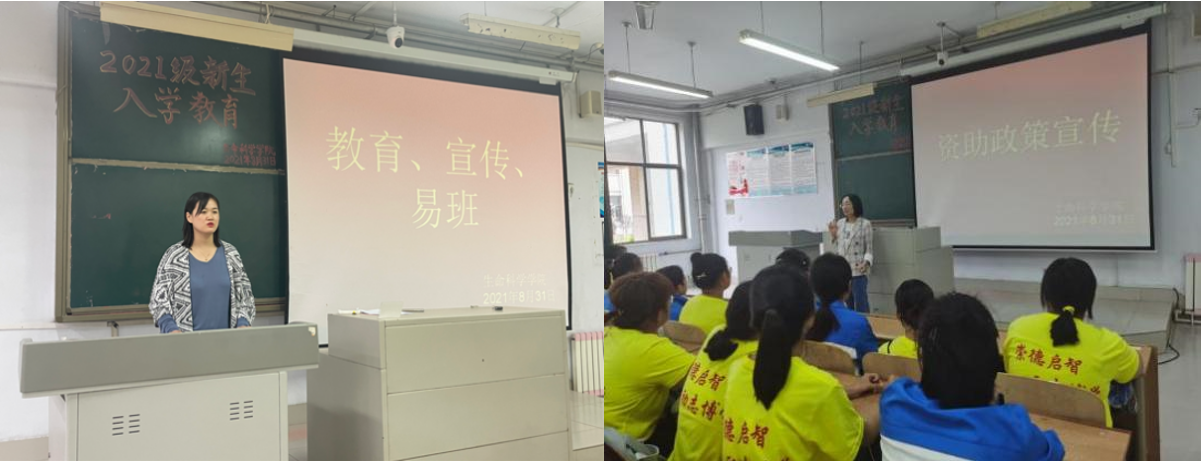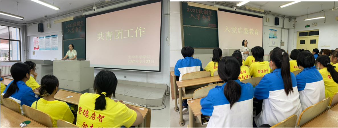 beat365官网第一学生党支部书记王艳洁、第二学生党支部书记郑金召为2021级新生上了一堂生动的入党启蒙教育课,组织新生集中学习了组织学生学习了《中国共产党章程》,详细介绍了入党的条件和程序、党员的权利和义务、大学生入党的基础知识等方面的内容,引导同学们结合自身岗位实际,从身边做起,从点滴做起,怀揣梦想,时刻心系祖国,为实现中国梦做好准备。除此之外,beat365官网把校史校情教育也作为重要的一环,21级新生们分批走进校史馆、山东省生物物理重点实验室,伴随着志愿者的热情讲解,使新生们深刻感受到学校浓厚的历史积淀,激发了他们参与科学研究的兴趣,切实增强了同学们对学校的荣誉感、归属感。