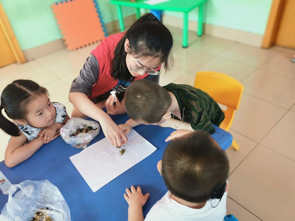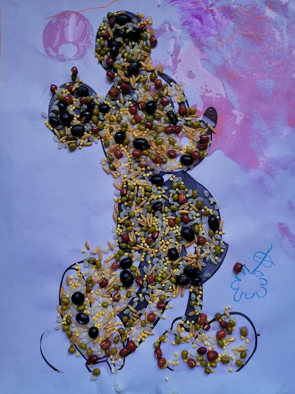 beat365官网志愿者们积极报名参加并提前准备好豆子画制作的材料。制作前,我们的志愿者首先给孩子们介绍各种豆类的特征及生长习性;随后给孩子们展示完整的豆子画作品,并分发绿豆、黑豆、红豆等豆类和彩纸、白胶等材料;接下来给孩子们进行绘画步骤及粘贴方法的讲解和展示,引导孩子们独立思考,大胆想象,鼓励他们自己动手画画及粘贴,自主创作豆子画;最后利用课余时间和小朋友们进行互动游戏。
