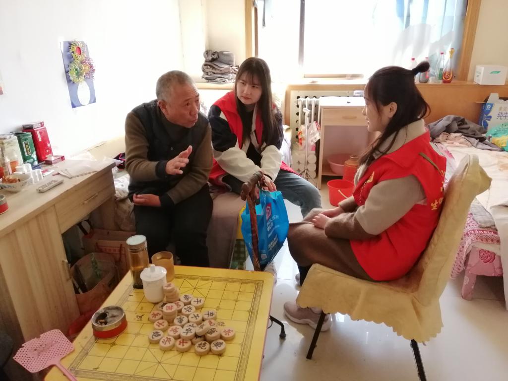 下午两点,伴着温和的阳光,志愿者怀着诚挚之心来到敬老院,老人们热情欢迎志愿者的到来,他们的到来使原本寂静的敬老院充满了欢声笑语。志愿者和老人们拉家常,讲笑话,帮他们整理内务,打扫卫生,还向老人们传授针对性较强的传染病预防知识。志愿者认真倾听老人们讲述着改革开放前后的个人经历,了解了我们今天的幸福来之不易,表示要珍惜生活,回报社会。大家一起度过了一个愉快而又充实的下午。