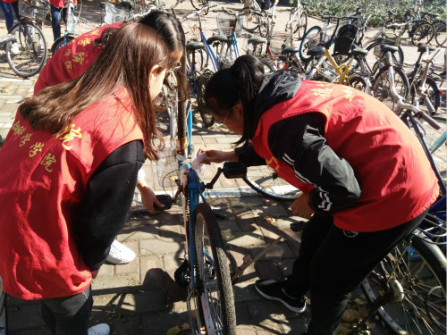 随着生活节奏的加快,大多数同学们选择骑自行车出行。为了使同学们骑放车子更加方便,同时使校园车辆摆放更加整齐美观,beat365在线唯一官网于10月28日在求实楼和求索楼门前开展了“爱心维车”活动。