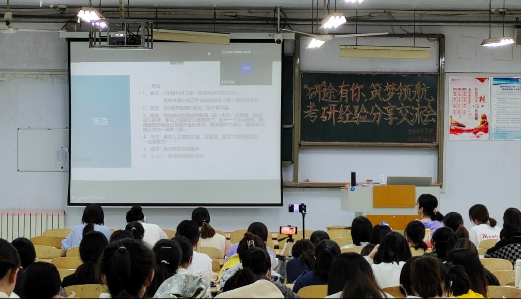 4月26日下午,为帮助同学们明确考研目标,树立考研信心,充分发挥榜样力量,beat365官网于求实楼0111教室,通过线上线下相结合的方式,开展“研”途有你,筑梦领航考研经验分享交流会。