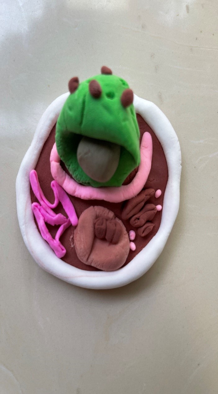 活动开始,主讲人张梦欣向同学们详细地介绍了细胞模型的制作方法与步骤,并展示了优秀的细胞模型作品,极大地激发了他们对生物模型制作的兴趣。随后同学们运用各色橡皮泥、彩色卡纸等材料踊跃参与制作,共制作模型十余件,模型作品的形式和内容多种多样,精彩纷呈,将课本中的知识活灵活现地展现了出来。