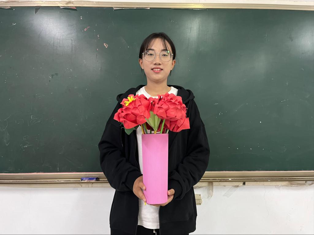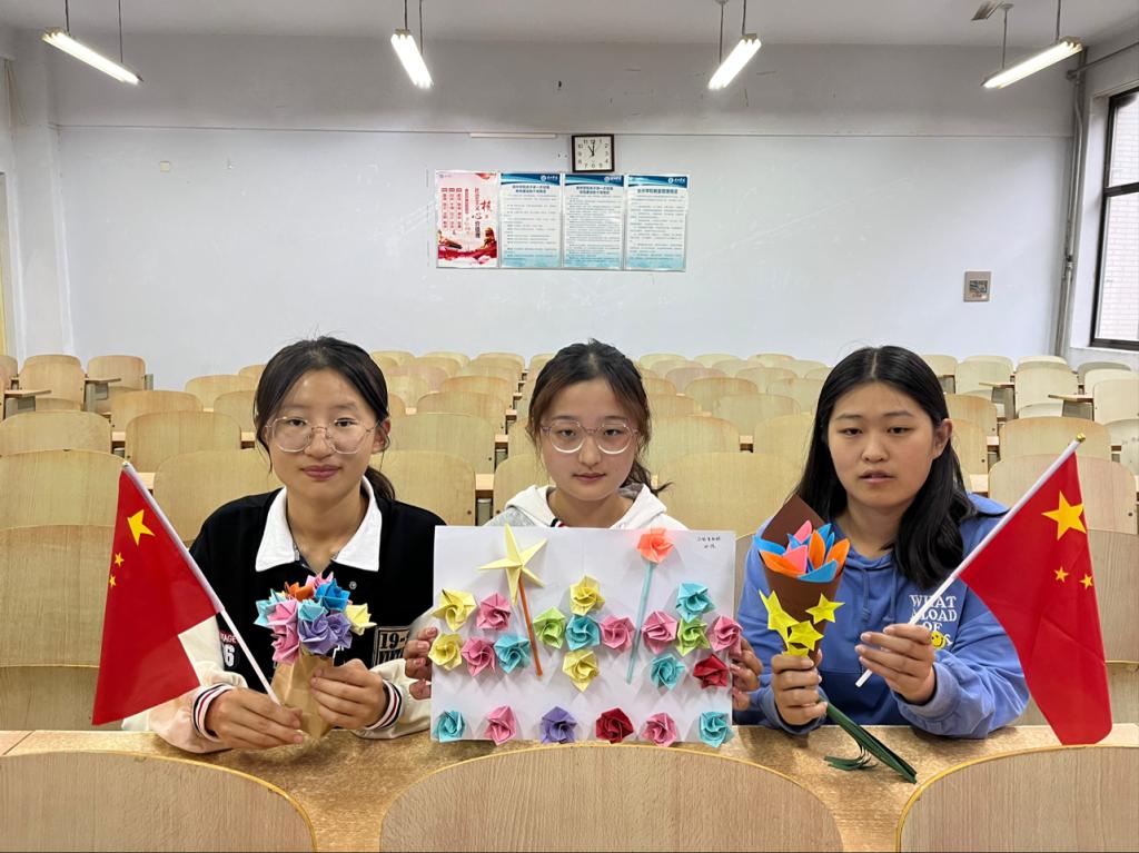 活动中,同学们以纸张为媒介,通过剪裁、缠绕和粘贴等工序,在一纸一剪中将爱国爱党情怀与中国传统技艺结合,呈现出一幅幅寄托着美好祝愿的折纸作品,深切表达出他们对祖国繁荣昌盛的真挚祝福和为实现中华民族伟大复兴的中国梦而不懈奋斗的坚定信念。