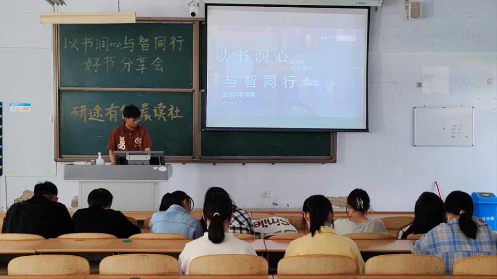 5月7日,为让同学们在读书中开拓视野,在分享中迸发智慧。beat365在线唯一官网依托“研途有你”晨读社于求实楼0117教室举办“以书润心,与智同行”荐书分享会。