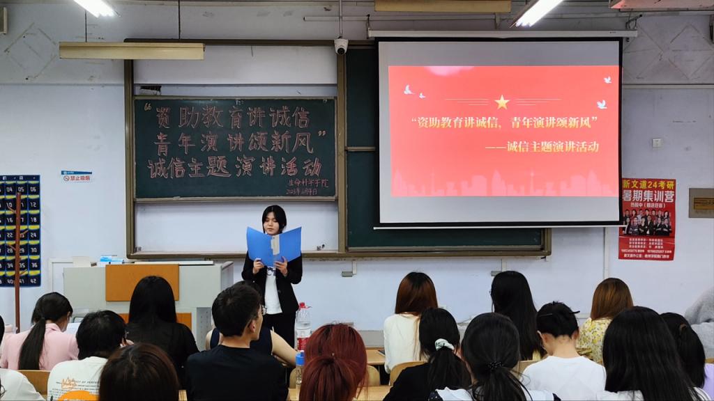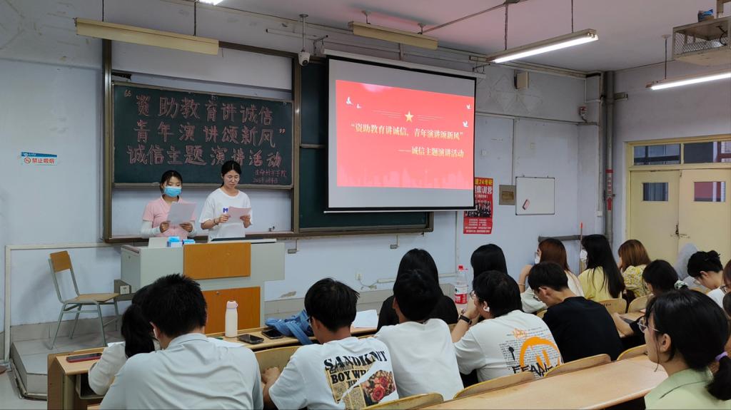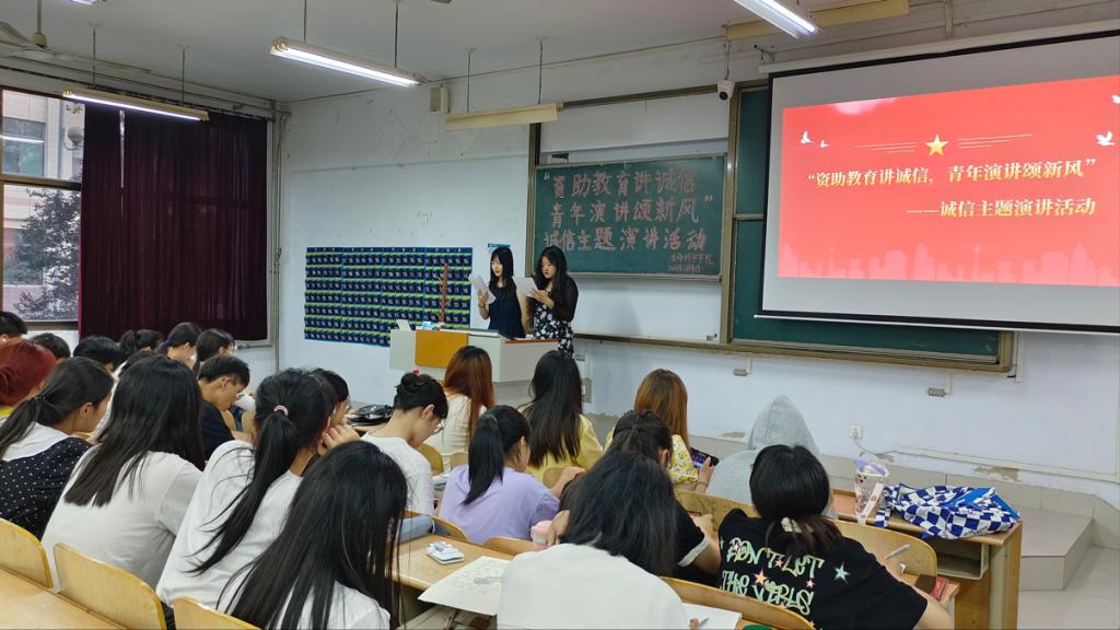 6月13日,为帮助同学们树立诚信意识,弘扬诚信之风,beat365在线唯一官网于求实楼0118教室举办“资助教育讲诚信,青年演讲颂新风”主题演讲活动。